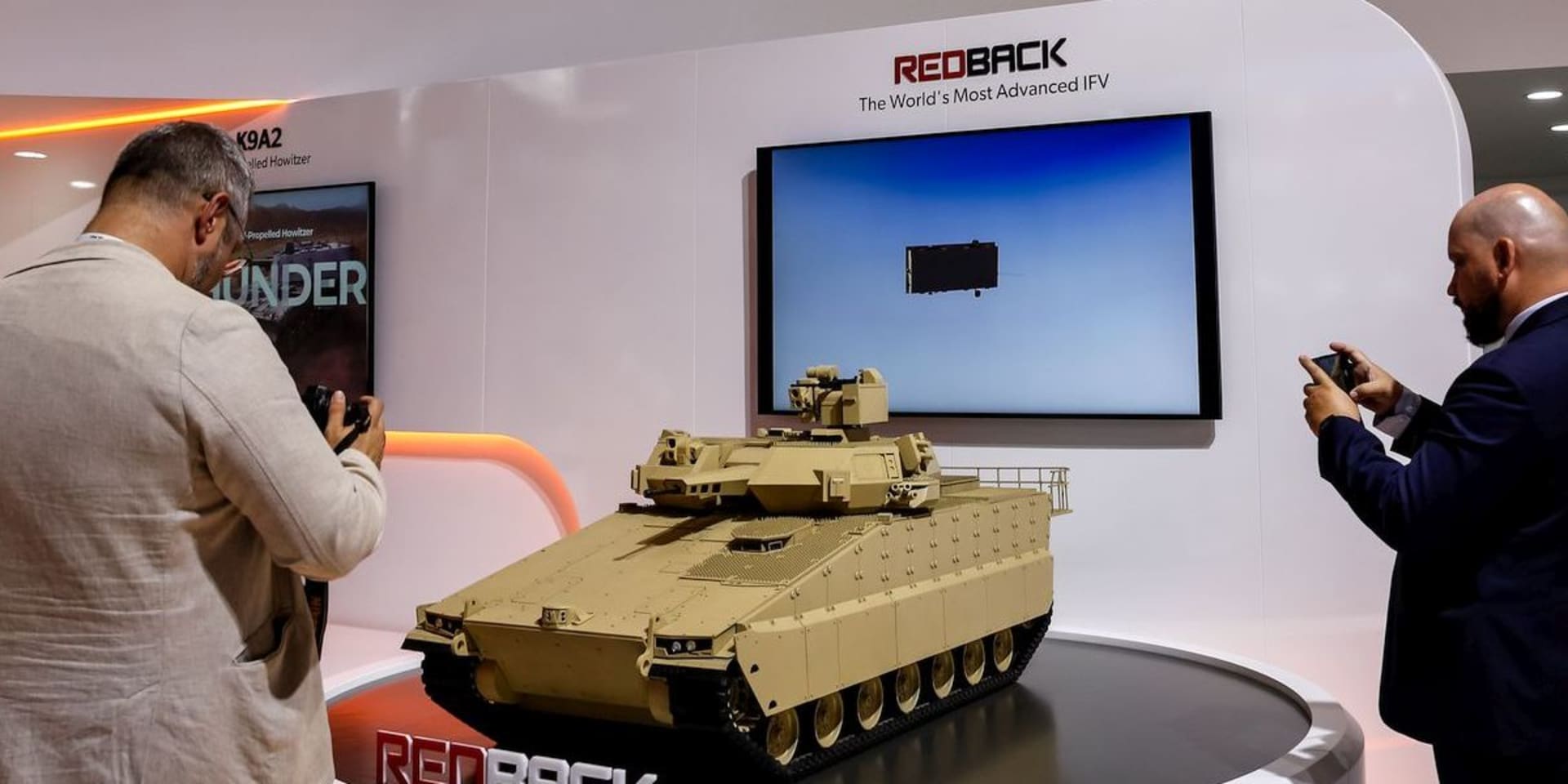 Bezoekers kijken naar een tank van Hanwha tijdens de International Defence Industry Exhibition in Polen in 2024