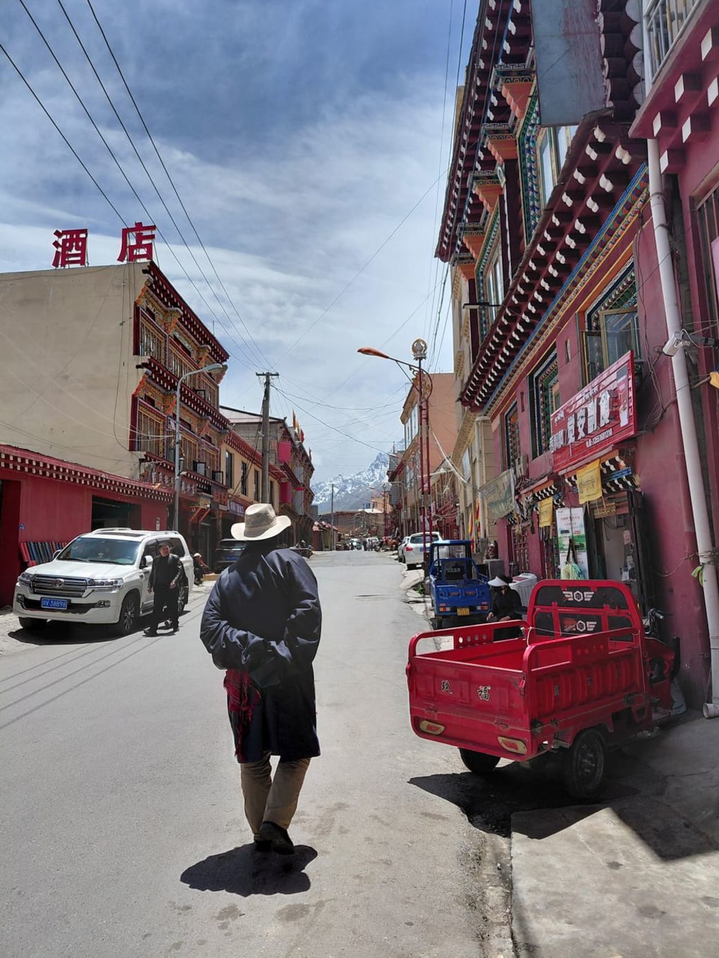 De monnik en ik hebben duidelijk een wederzijdse bewondering voor elkaars levensstijl. Dat schept een band en het is makkelijk om de uren vol te praten met behulp van de vertaalfunctie in WeChat. We passeren een klooster met een hoge toren, zeer atypisch voor de Tibetaanse bouwstijl. Het viel me in de heenweg ook al op, maar nu kan ik er naar vragen. ‘Er stond een groot beeld in dat ik jaren geleden eens bezocht’, antwoordt de Monnik. ‘Maar nu is het afgesloten. Ik vraag me af waarom.’ ‘Zouden ze het kapotgemaakt hebben?’, vraag ik. Hij kijkt bevestigend naar me en maakt met zijn handen duidelijk dat we elkaar begrijpen. Dan zegt hij via WeChat: ‘China is een heel fijn land’. Ik weet genoeg.