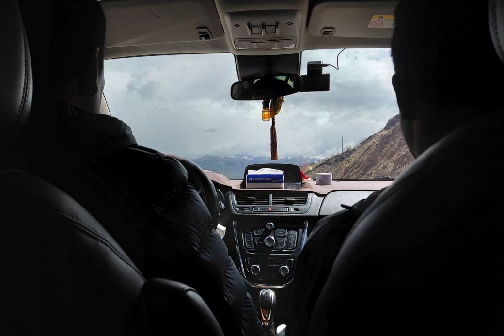 Ik verlaat Derge al liftend. Het lijkt me de beste manier om in contact te komen met locals. Nog geen kwartier later stopt er een auto en ik heb geluk: ik kan de komende uren meeliften met een Tibetaanse monnik die een bevriende monnik van het vliegveld gaat ophalen.