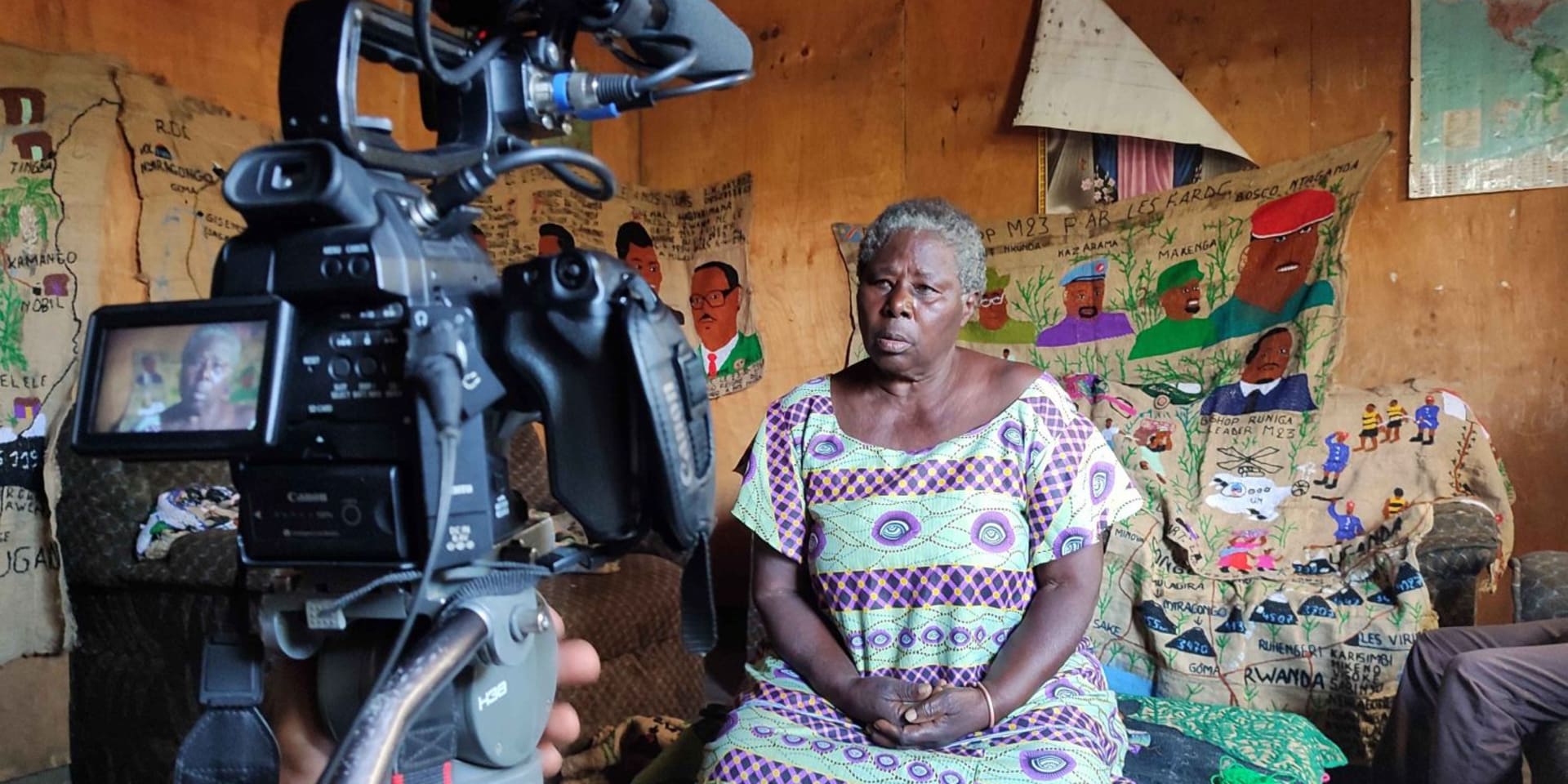 Kamuswekera begon met borduren toen ze mensen zag sterven. ‘Ik wil dat ze mijn werk zien en weten dat het écht is, het lijden dat we gekend hebben’, vertelt ze. Zelf verloor ze haar man in 1997 tijdens de eerste Congolese oorlog. Geweld kwam en komt nog steeds veel voor in de provincie Noord-Kivu. En door de genocides in Rwanda zijn honderdduizenden Rwandezen naar Oost-Congo gevlucht.