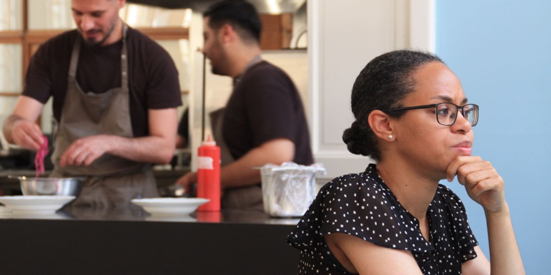 Maar voor auteur en politicologe Nadia Nsayi zorgt de plek meteen voor herkenning en emotie, want haar moeder ging aan de slag in de horeca toen ze in België kwamen wonen. Het feit dat in de keuken en in de zaal van Samenloop zoveel mensen van kleur werken, roept meteen een wereld van migratie, verlies en veerkracht op.
