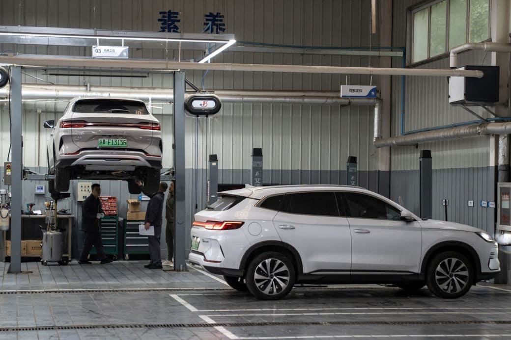 De BYD-fabriek in Changzhou, een stad ten westen van Shanghai, ademt geen stress of drukte. Straatverkopers staan voor de poort met noedels, brochettes, frisdranken en zelfs mobiele kappersstoelen. Van massaproductie lijkt geen sprake.