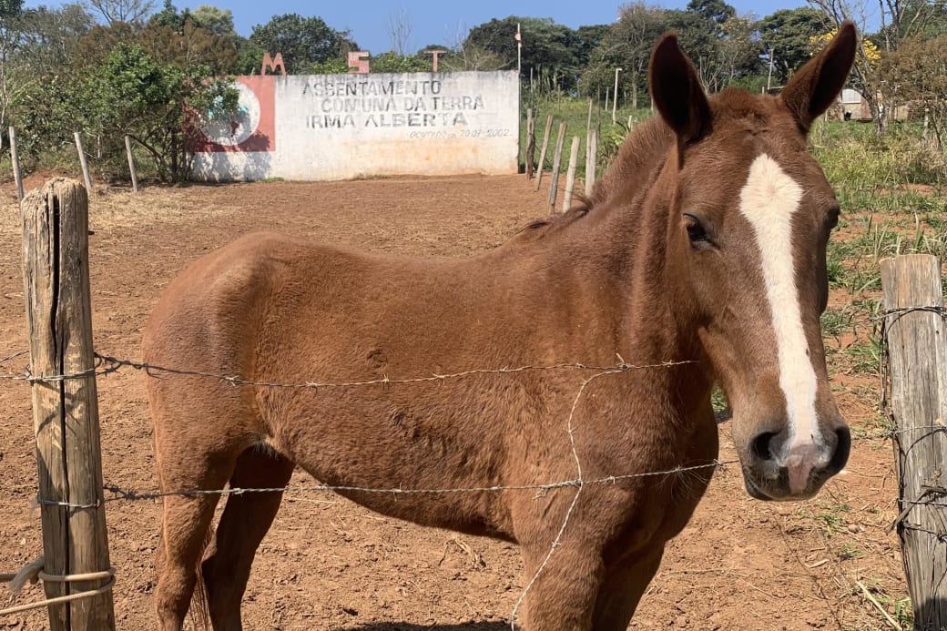Van het gemeenschapshuis voorbij de ingang van Comuna da Terra Irmã Alberta is het zo’n twintig minuten wandelen naar het huis van Roseãngela's zus Iris, in het hart van de enclave. De wandeling voert langs twee vrolijk met hun staart wuivende paarden, bananenbomen, cactussen en verschillende, wat armoedige huisjes in aanbouw.