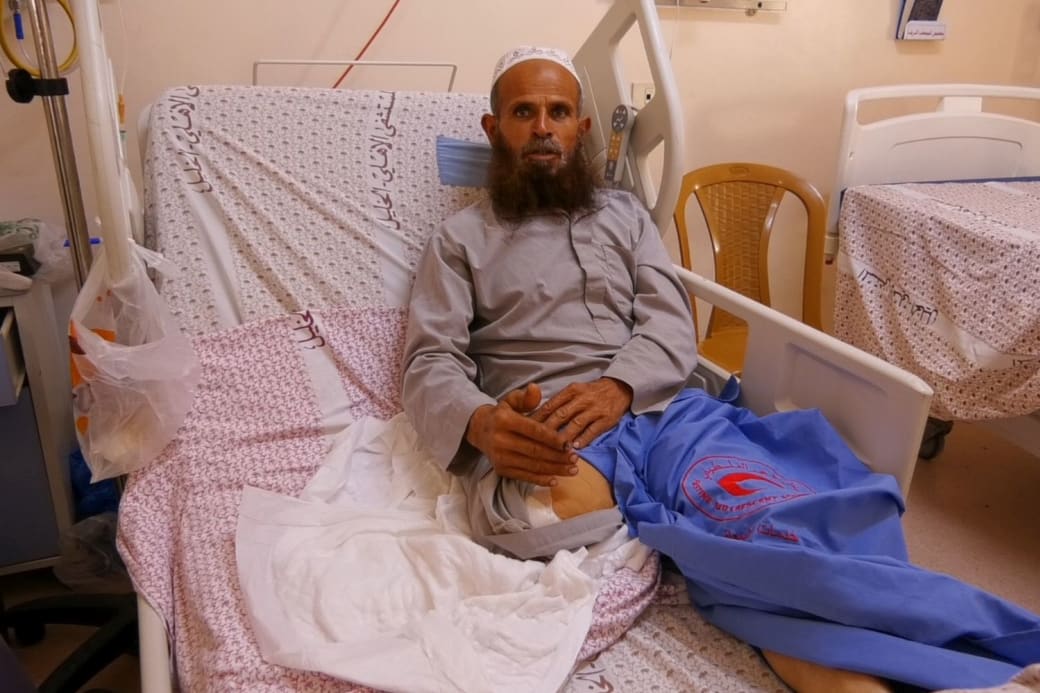 Zijn vader wordt in kritieke toestand afgevoerd naar het Israëlische ziekenhuis in Be’er Sheva. Zijn rechterbeen blijkt niet meer te redden en zal drie dagen later boven het dijbeen worden geamputeerd, allemaal terwijl hij vast geboeid is aan zijn ziekenhuisbed.