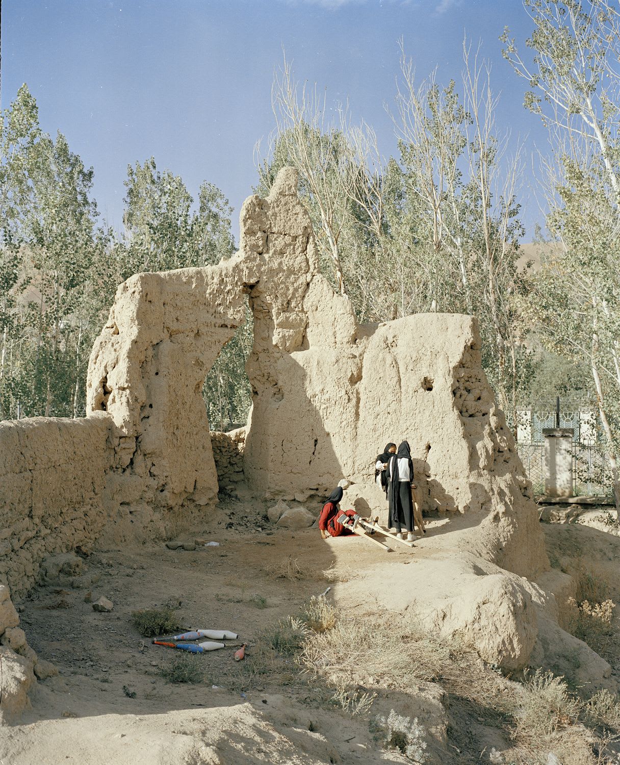 Drie meisjes in een ruïne. Ze lezen geen schoolboeken. Meisjes mogen geen onderwijs meer volgen van de Taliban. Ze werden eerder al uitgesloten van het politieke, sociale, economische en culturele leven, en nu vervliegt de laatste hoop op zelfontwikkeling.